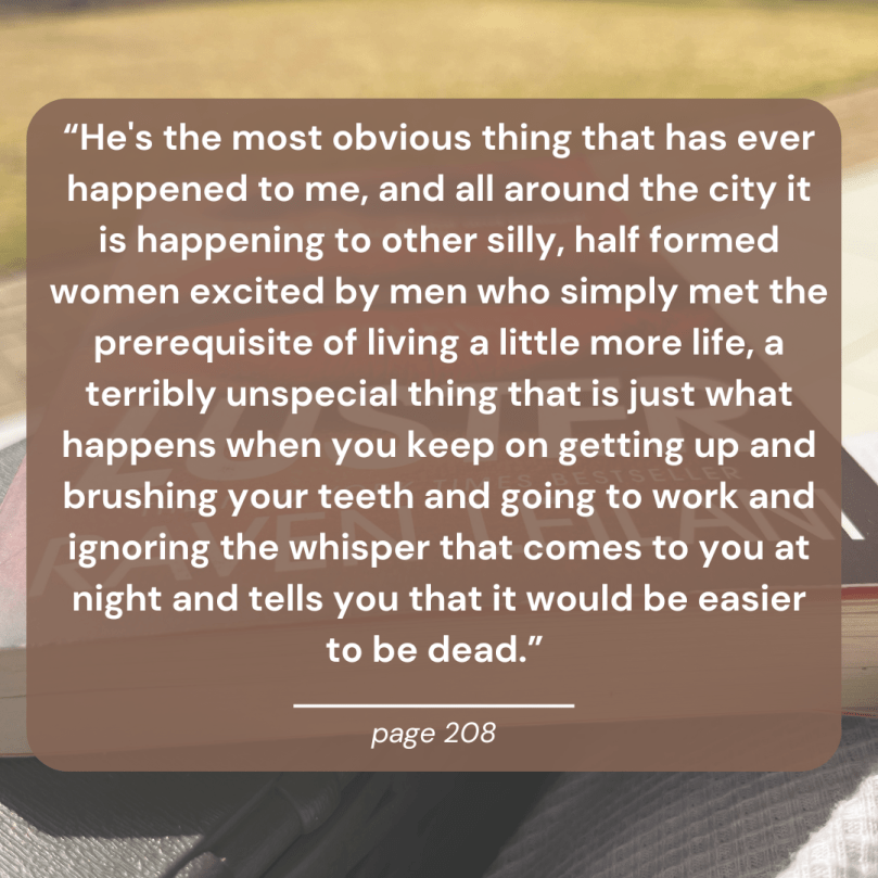 As I said, story-wise – hated it, Edie was living through the wound from onset and throughout. I suppose her upbringing was the catalyst for some of the chaos that was her lived experience, to be fair she couldn’t make better choices because she often didn’t have the liberty to truly choose. But Raven is such a good writer that I stayed the course despite myself to find more of her tragic, curt and heart-wrenching sentences and passages. Some of my “best bits” below: