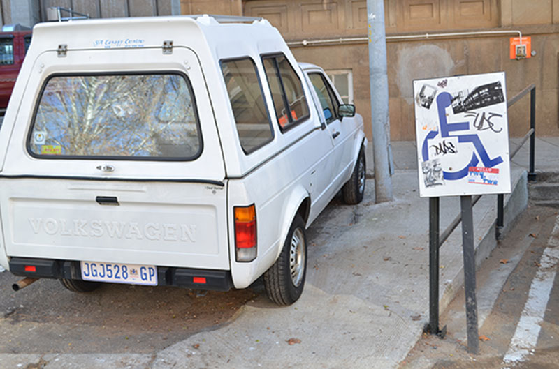 PARKED IN: Students in wheelchairs would not be able to access this ramp outside the School of the Arts as a driver decided to turn into a parking bay. Photo: Pheladi Sethusa